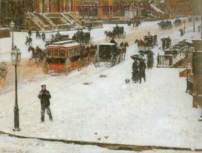 Childe Hassam, Fifth Avenue in Winter Fine Art Reproduction Oil Painting