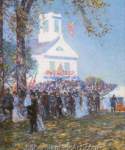 Hassam, Childe BiographyAmerican painter and etcher, born in Dorchester, Massachusetts, and educated at the Boston Art School and the Ecole des Beaux-Arts in Paris. Childe Hassam was the chief American exponent of impressionism. His primary objective both in his paintings and in his etchings was to represent the effects of sunlight in city scenes and in landscapes of rural New England. Childe Hassam 's artworks include July 14 Rue Daunon (1910) and Church at Gloucester (1918), both in the Metropolitan Museum, New York City. Hassam is remembered primarily for the sparkling effects that he achieved.