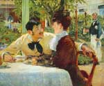 Manet, Edouard BiographyFrench oil painter and printmaker who in his own art work accomplished the transition from the realismof Gustave Courbet to Impressionism. Manet broke new ground in choosing subjects from the events and appearances of his own time and in stressing the definition of painting as the arrangement of paint areas on a canvas over and above its function as representation. Exhibited in 1863 at the Salon des Refuses, his Le Dejeuner sur le Herbe ("Luncheon on the Grass") aroused the hostility of the critics and the enthusiasm of a group of young painters who later formed the nucleus of the Impressionists. Manet's other notable works include Olympia (1863) and A Bar at the Folies-Bergere (1882).