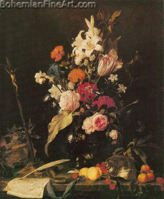 Jan Davidsz. De Heem, Vanitas Still Life with Flowers Fine Art Reproduction Oil Painting