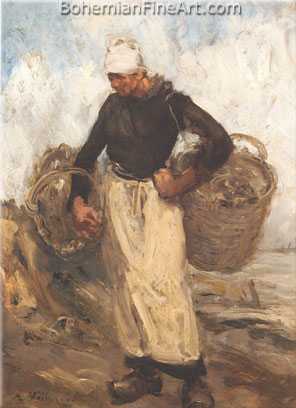 Antoine Vollon, A Fisherwoman Carrying Baskets Fine Art Reproduction Oil Painting