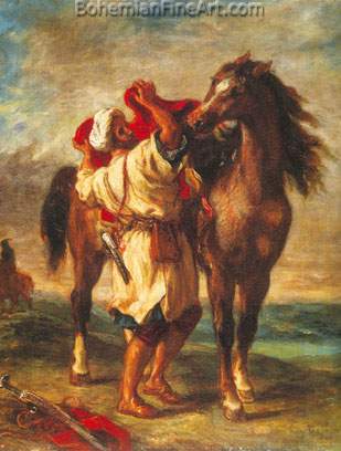 Eugene Delacroix, Arab Saddling a Horse Fine Art Reproduction Oil Painting