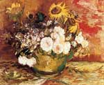 Vincent Van Gogh, Bowl of Sunflowers+ Roses and Other Flowers Fine Art Reproduction Oil Painting